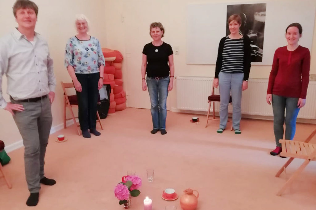 Von Renate Kommerts (Zweite von links) jahrzehntelanger Erfahrung als Pädagogin, Heilpraktikerin, Körperpsychotherapeutin und Meditationslehrerin profitierten nun auch Mitglieder des DTKV Hamburg. Am 5. September fand in den Räumen von Renate Kommert in Altona der erste Nach-Corona-Fachaustausch statt. Zwei Stunden lang wurden die Teilnehmenden in die Achtsamkeitspraxis MBSR (Mindfulness Based Stress Reduction) eingeführt und lernten auch, wie sich dieses hilfreiche Training in den oft stressigen Alltag integrieren lässt. Fazit: Gern wieder! Der DTKV Hamburg sagt herzlichen Dank für die anregende Einführung.